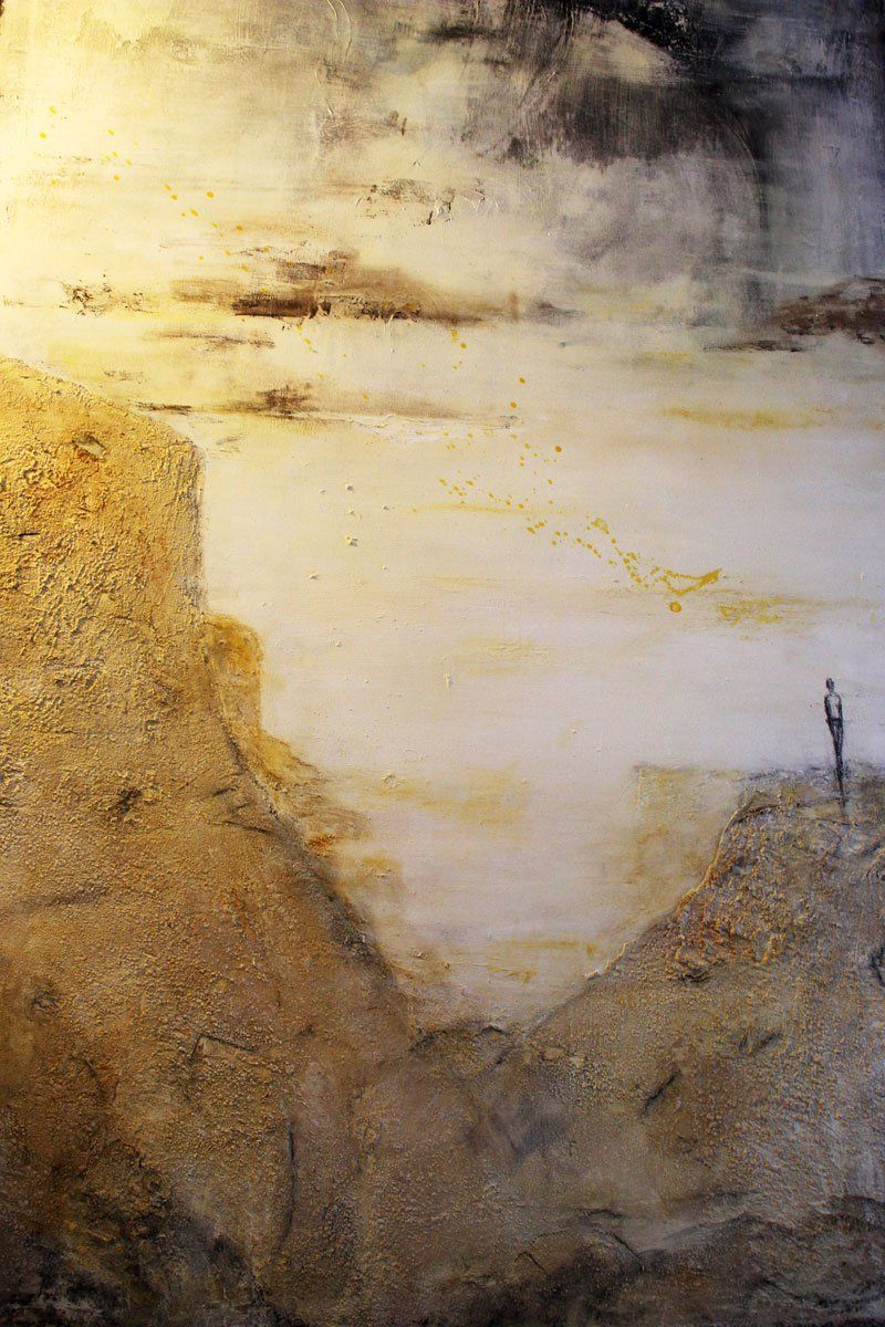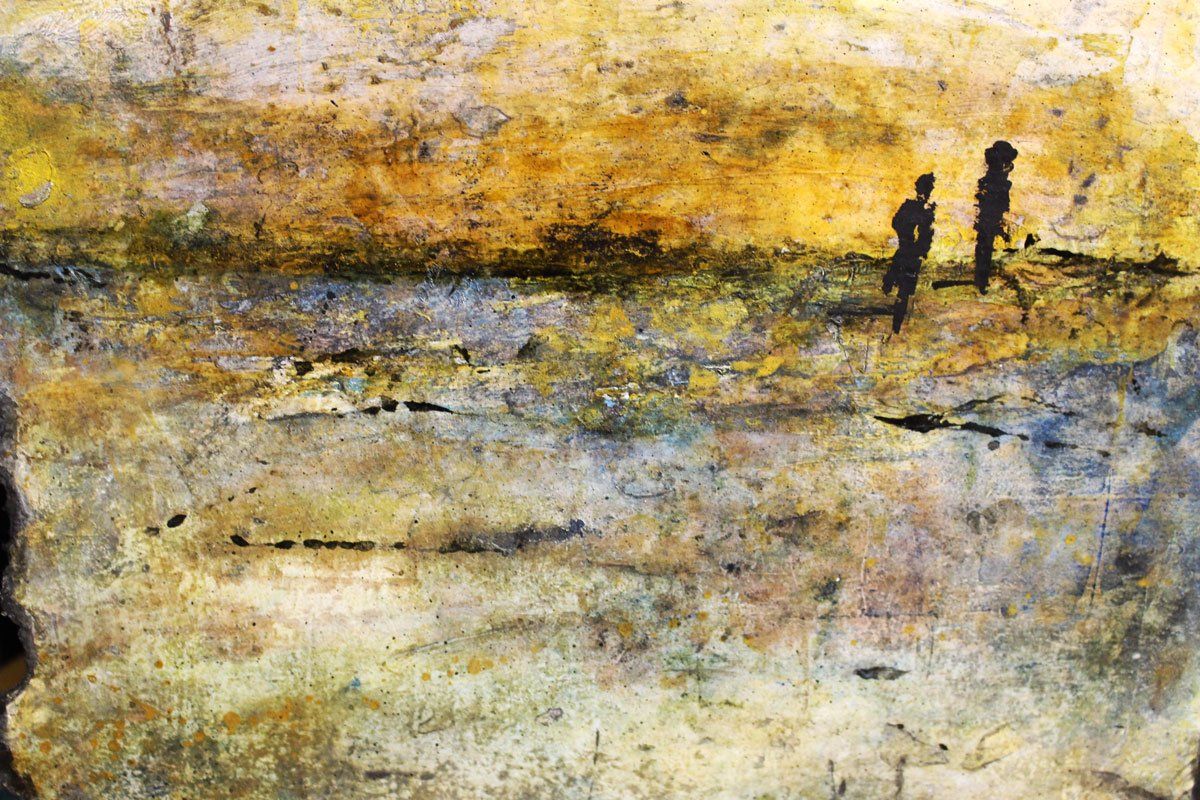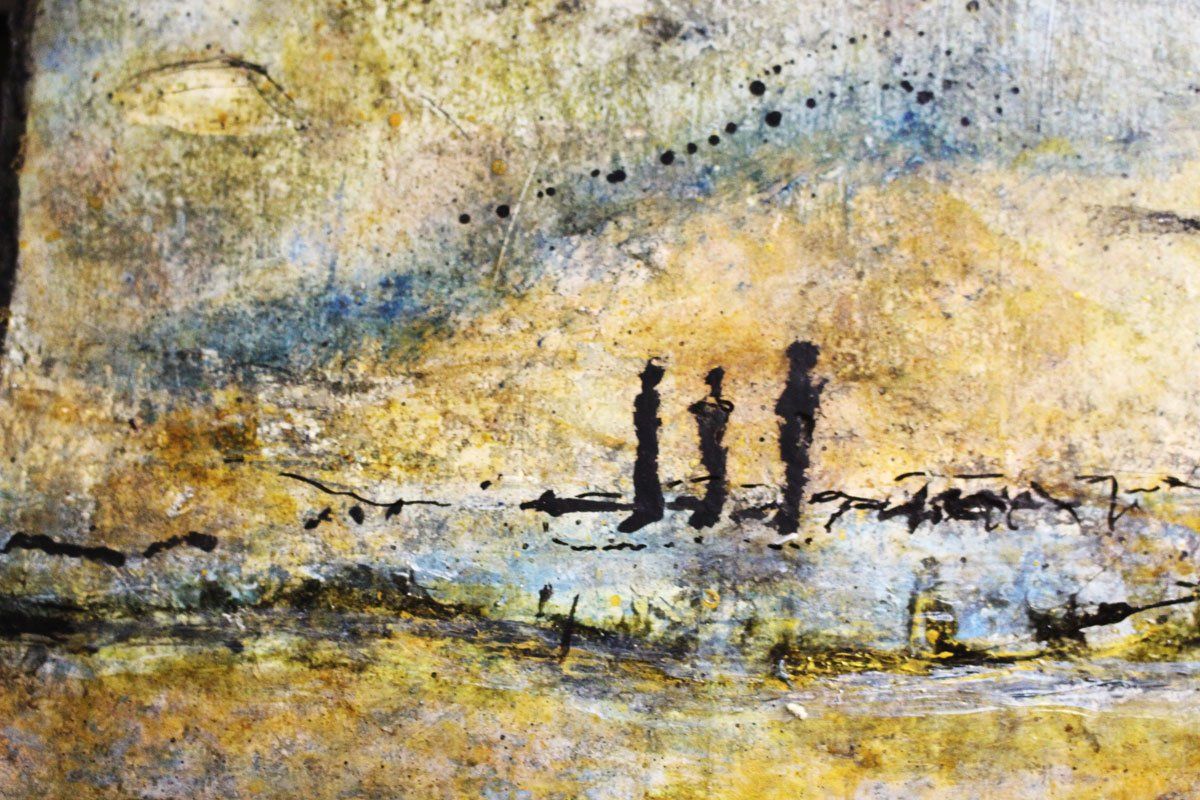 Inspiriert durch Workshops und Malreisen – besonders mit der Künstlerin Gabriele Musebrink aus Essen – habe ich meine Erfahrung im experimentellen Arbeiten mit Marmormehl, Champagnerkreide, Sumpfkalk, Gipshaftputz, Sanden, Pigmenten, Tuschen, Beizen, Schellack, Moorlauge, Bitumen und Knochenleim erweitert.
